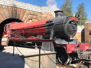 During your Universal trip, if you are wondering how to get from Diagon Alley in London to Hogsmeade in Scottland, then you just hop on board the Hogwarts Express in London Station Platform 9 3/4! (But make sure you have a ticket that allows you to park hop before you try to get of the train!)